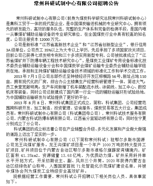 ×關閉 科試集團龍王溝招聘信息